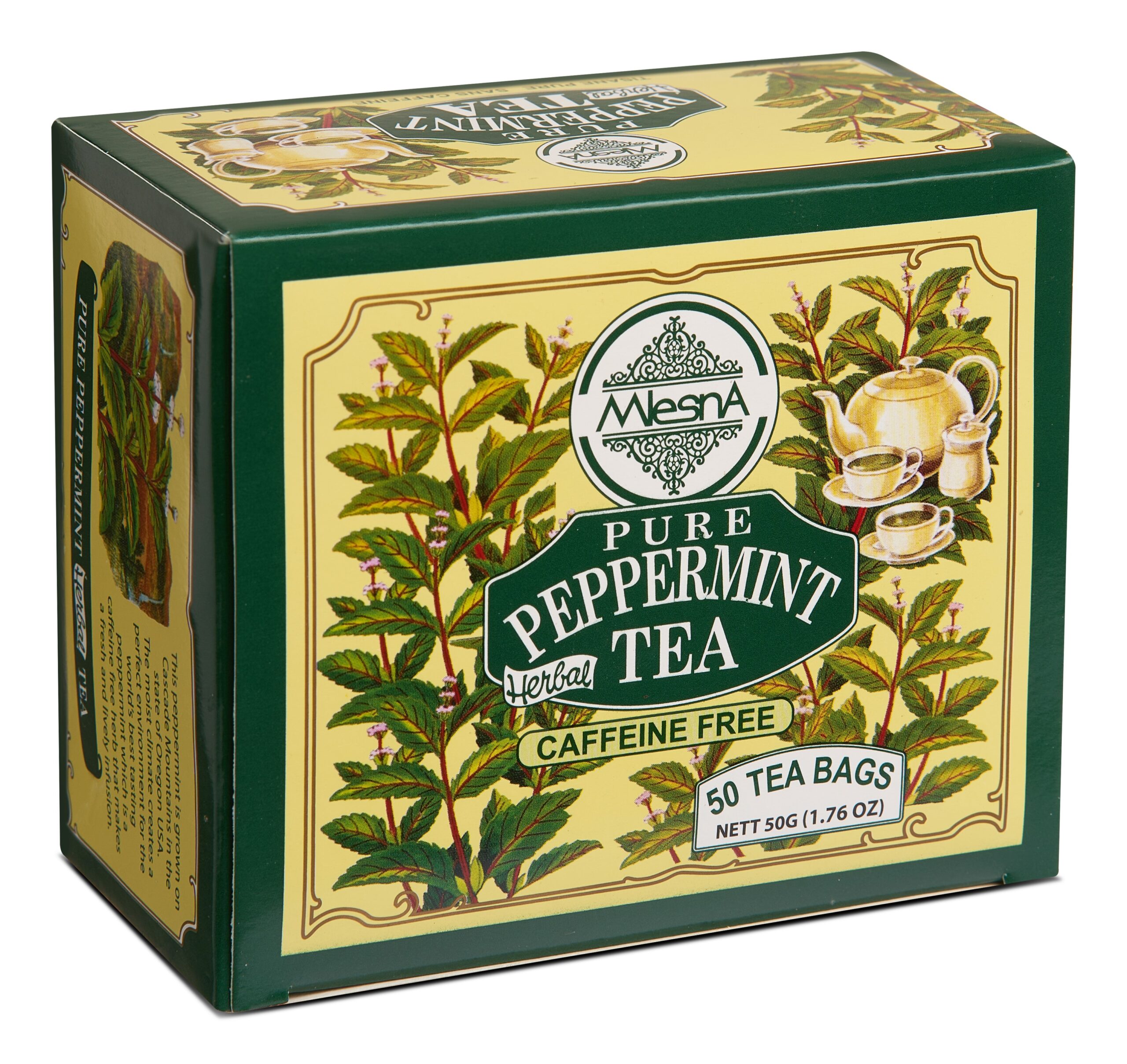 Найдавніше пряно-ароматична рослина. Ефективний засіб при порушеннях роботи шлунково-кишкового тракту: хворобливих спазмах, метеоризмі, нудоти. Показанням до застосування є і хвороби жовчного міхура, оскільки м’ята сприяє відтоку жовчі. М’ята має болезаспокійливу, антисептичну, протисудомну і заспокійливому дією. Застосовується при неврозах, безсонні, стенокардії. Фахівцями компанії MLESNA використовуються тільки черешкові листочки, зібрані безпосередньо перед цвітінням. Не містить кофеїн.
