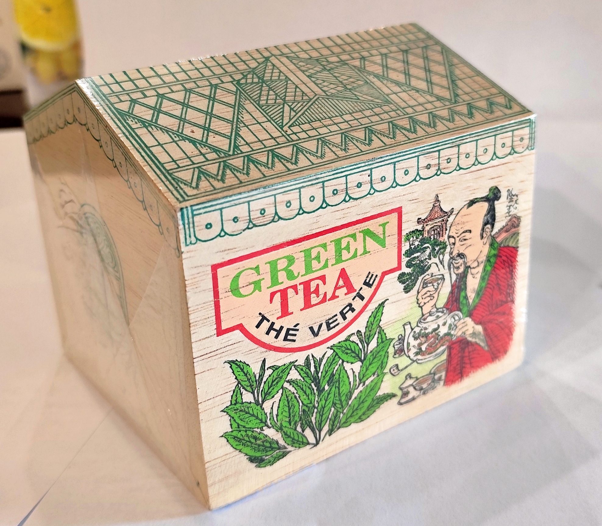 Зелений крупнолистовий цейлонський чай в деревянном домике.