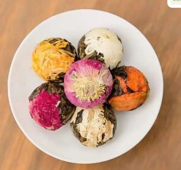 При заваривании шар раскрывается в виде цветочного бутона с определенным соцветием внутри. Готовый напиток имеет золотистый оттенок, вкус насыщенный и сбалансированный.