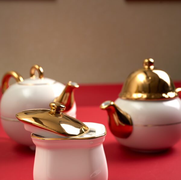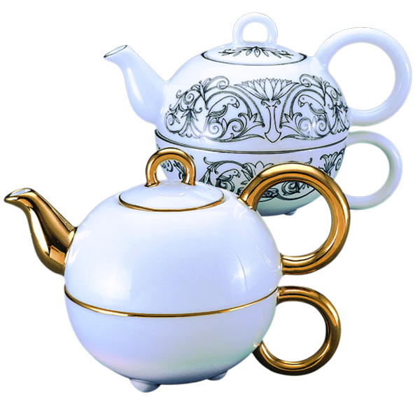 Фарфоровый чайник и чашка на одну персону для любителя долгого и упоительного чаепития. Чайник содержит 100 г чёрного чая.